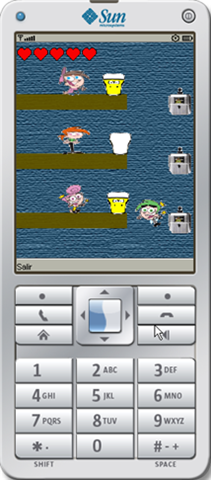 Recordarán que en un post pasado, les hablé de un juego que hice con JavaME...Pues bueno, como lo prometido es deuda, aquí les muestro un par de imágenes...Claro, el juego no es ninguna maravilla...Es en realidad un clon bastante humilde de un juego hecho en Flash. Pero lo que en realidad me gusta del juego, es todo lo que aprendí desarrollándolo...